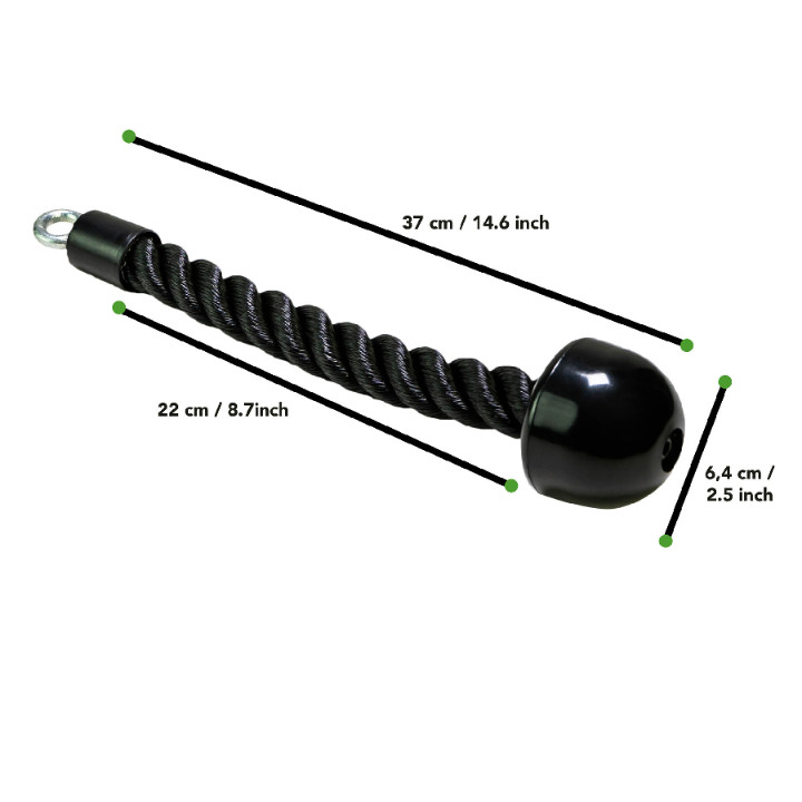 napravljen od teškog pletenog najlona i ima dodatak za kuku od ojačanog čelika. Ovaj triceps kanap sa jednoručnim hvatom nudi udobno držanje i može se