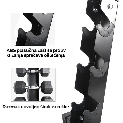 Idealan je za odlaganje Hex, Hromiranih i Premium gumiranih bučica Fitness Experience.