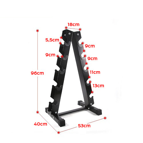 Razmak između udlaga (mesta za bučicu) je dovoljno veliki da može primiit setove od 5, 10, 15, 20, 25 kg, a da pritom bučice možete komforno uzimati i vraćati na njihova mesta. Kosi stalak za 5 pari bučica možete koristiti i za male setove od 1 do 5kg ili od 5 do 10 kg, a da pritom nenarušite dizajn vašeg prostora.Ovaj stalak je izuzetno praktičan i pomaže u organizaciji prostora jer zauzima veoma malo mesta. Zbog svoje funkcionalnosti, idealan je za teretane i fitnes centre koji žele da održe čistu i urednu radnu okolinu za svoje korisnike. Njegova kompaktnost omogućava lako pozicioniranje u prostoru, bez zauzimanja previše prostora. Uz kosi stalak za 5 pari bučicea, održavanje reda u prostoru za vežbanje postaje mnogo lakše, čime se povećava efikasnost i produktivnost treninga.