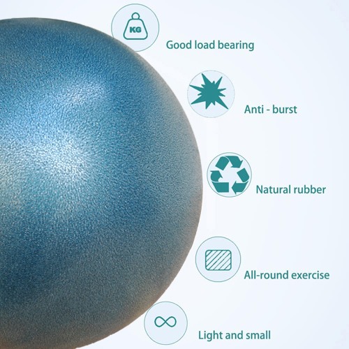 Mini pilates lopta je netoksična, hipoalergena i bez ftalata. Zaštita od pucanja do 100 kg.
