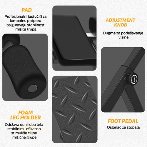 Multifunkcionalna hiperekstenzija je više od obične klupe – to je svestrana sprava za kompletan trening tela koja vam pomaže da unapredite snagu, stabilnost i kondiciju, a da pritom ne zatrpate svoj prostor.