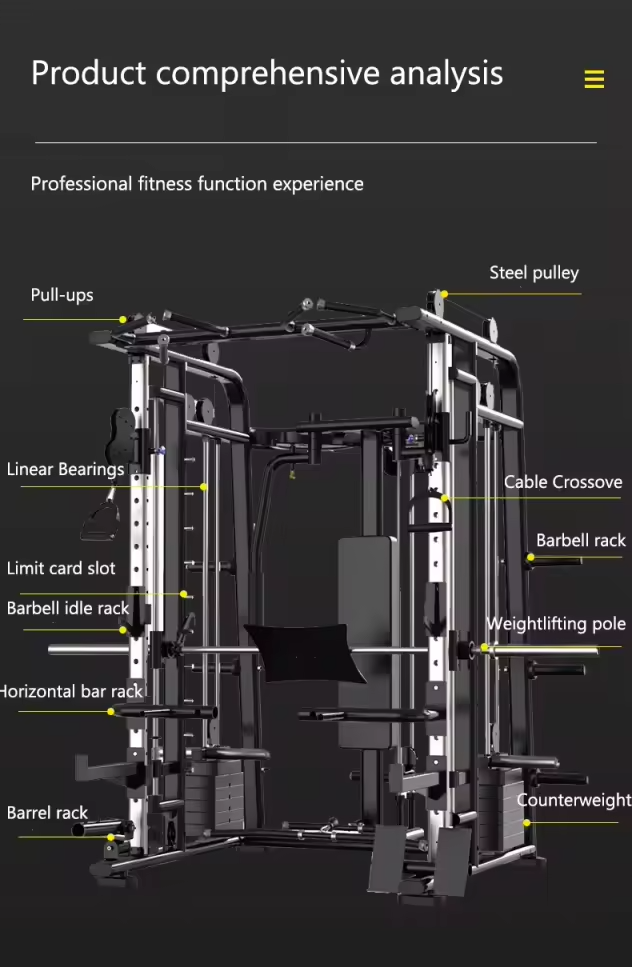 Ako želite da maksimalno iskoristite prostor i dobijete kompletan fitnes centar u jednoj spravi za vežbanje, ova multifunkcionalna sprava je pravo rešenje. Dizajnirana da objedinjuje funkcije čak 10 različitih sprava, omogućava vam izvođenje širokog spektra vežbi za sve mišićne grupe. Njena čvrsta i masivna konstrukcija, zajedno sa vrhunskom završnom obradom i modernim dizajnom, čini je idealnom kako za profesionalne fitnes studije, tako i za kućne teretane.