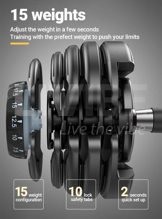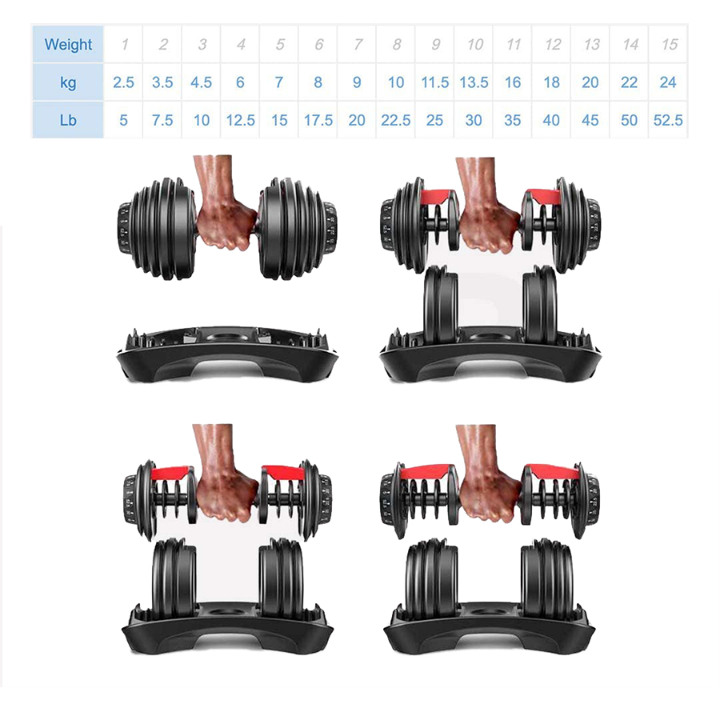 Jedna od glavnih prednosti naših bučica je njihova mogućnost podešavanja težine. Sa 15 različitih kombinacija težina, koje se kreću od 2,5 kg do impresivnih 24 kg, možete prilagoditi vaš trening baš onako kako vam odgovara. Bilo da želite veći izazov ili se tek upoznajete sa svetom vežbanja, ove bučice će vam pružiti sve što vam je potrebno.
