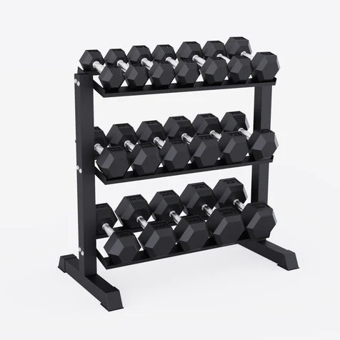 Stalak za bučice namenjen je odlaganju okruglih ili hex bučica od 5 kg do 35 kg, raspoređenih u 3 reda. Idealan ja za manje trenažne prostorije, gde je potrebno u što manjem prostoru smestiti veći broj bučica različitih težina.