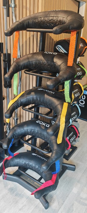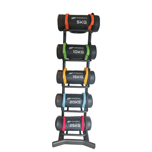 • Kapacitet za 5 vreća – Pogodan za odlaganje do 5 bugarskih i/ili fitnes vreća različitih težina. Vreće se na ovom stalku mogu i kombinovati.